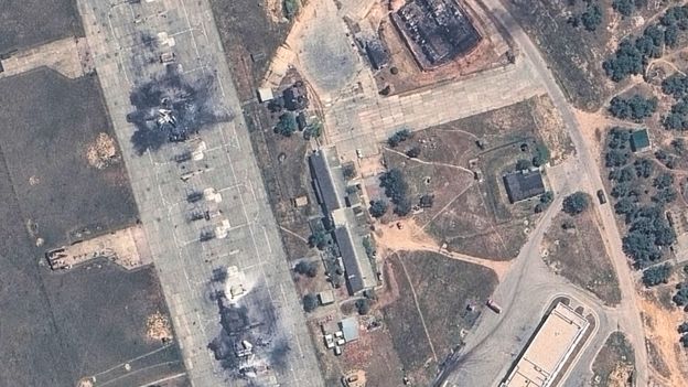 Zmasowany atak rakietowy Ukrainy sprzed kilku dni na Sewastopol na okupowanym Krymie zadał poważne straty Rosjanom. W sieci po ukraińskim uderzeniu pojawiły się nagrania z kulami ognia nad lotniskiem wojskowym armii Putina - bazą Belbek. Teraz agencja AP udostępniła zdjęcia satelitarne amerykańskiej firmy Maxar Technologies, które pokazują skalę zniszczeń i nijak mają się do wcześniejszych tłumaczeń Rosjan, że ich baza nie ucierpiała. Twierdził tak wówczas gubernator Sewastopola Michaił Razwożajew, który napisał na swoim kanale na Telegramie, że "rosyjska obrona powietrzna zestrzeliła kilka ukraińskich rakiet nad Morzem Czarnym i w pobliżu bazy lotniczej Belbek". Część rakiet jednak spadła na lotnisko, co dobrze widać na zdjęciach z kosmosu. Na pasie startowym roi się od zniszczonych myśliwców, a także widać doszczętnie spalony budynek. Co prawda, nie wszystko poszło z dymem, ale taki obrót spraw przysporzył Rosjanom sporo problemów, a także zmniejszył ich liczbę nalotów na wschodnie tereny Ukrainy.