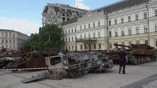 Ukraińscy urzędnicy rozszerzyli wystawę zniszczonych i przejętych rosyjskich rakiet, dronów, pojazdów opancerzonych i innych sprzętów wojskowych na jednym z najbardziej charakterystycznych placów Kijowa. Ciężarówki dostarczyły na plac obok katedry św. Michała w czwartek ogromne pojazdy wojskowe, w tym czołgi T-72 i T-90, podczas gdy urzędnicy przygotowywali stoły, na których pokazywano pozostałości dronów rozpoznawczych i rozmieszczone rakiety balistyczne i manewrujące używane przez rosyjską armię do ostrzału ukraińskich miast i miasteczek. Plac od dawna jest miejscem prezentacji zdobycznego i zniszczonego sprzętu rosyjskiego w trwającym ponad 15 miesięcy konflikcie między Moskwą a Kijowem. Wystawa zniszczonego rosyjskiego sprzętu cieszy się dużym zainteresowaniem wśród Ukraińców.