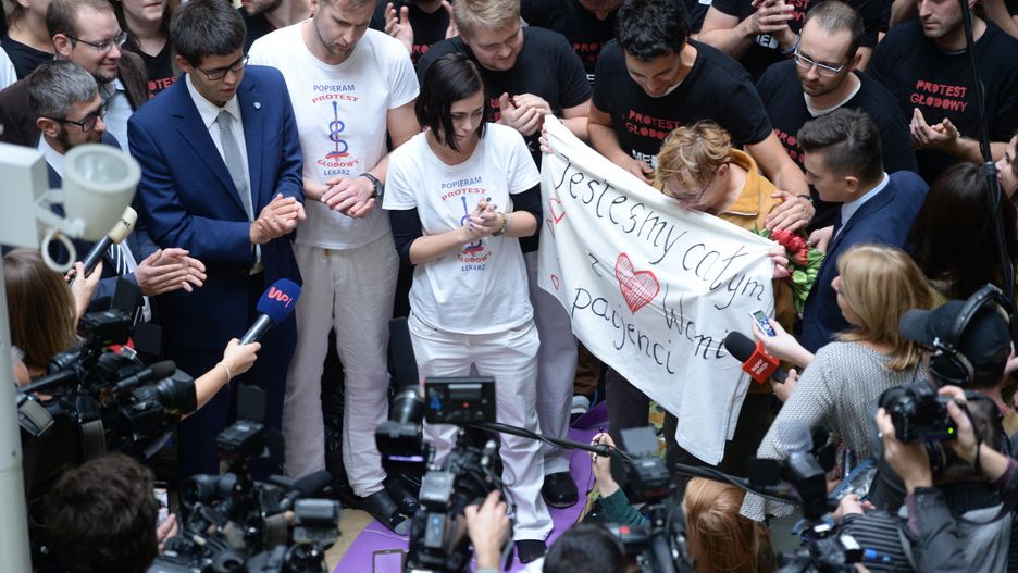 Zaostrzenie protestu czy jego zawieszenie? Protestujący od 15 dni lekarze rezydenci po fiasku rozmów ze stroną rządzącą zdecydują o kontynuacji protestu. W szpitalu przy ul. Żwirki i Wigury w Warszawie trwa protest głodowy lekarzy rezydentów.