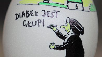 Pisanka ze strusiego jaja stworzona przez Andrzeja Mleczkę. Tę i inne ozdobione przez znanych artystów dzieła można oglądać na wystawie "Malowane Nadzieją" w łódzkiej Manufakturze. Za dwa tygodnie pisanki trafią na aukcję, a zebrane pieniądze przeznaczone zostaną na organizację wakacyjnych wyjazdów dla dzieci i młodzieży niepełnosprawnej.