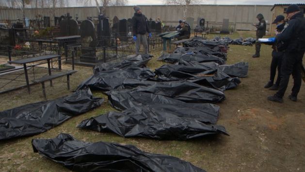 Trwa identyfikacja i pochówek ofiar masakry w Buczy na północ od Kijowa. Zadanie oględzin zmasakrowanych ciał setek zamordowanych ukraińskich cywilów powierzono m.in. policji. Masowe groby w Buczy odkryli ukraińscy żołnierze, którzy przejęli tereny na północ od stolicy Ukrainy, po wycofaniu się rosyjskich wojsk. Wiele ciał znajdowano na ulicach i przed domami, nie były zakopane. Funkcjonariusze podczas oględzin odkrywają coraz większe okrucieństwa, jakich doświadczyły ofiary przed śmiercią. Wiele ciał jest już w stanie utrudniającym identyfikację. Wolontariusze i policjanci transportują zbierane ciała na miejscowy cmentarz. Reporterzy agencji Associated Press towarzyszyli służbom podczas tej trudnej pracy. W tym czasie naliczyli co najmniej 61 zwłok w workach, które udało się przenieść na przepełniający się cmentarz. Policjanci otwierali każdy z worków i sporządzali notatki, które mogą pomóc w dalszej identyfikacji ofiar. Reporterzy AP widzieli również 25 worków z ciałami, które zostały załadowane na ciężarówkę-chłodnię i przewiezione do kostnicy, gdzie zostanie przeprowadzona sekcja zwłok. Kierownik cmentarza powiedział, że do tej pory zebrano około 300 ciał, ale dodał, że wiele z nich pozostało w prowizorycznych grobach w ogrodach i na podwórkach. Jeden z wolontariuszy pomagających w zbieraniu ciał przekazał, że jednego dnia przyniósł na cmentarz około 30 ciał. W trakcie rozmowy z agencją Associated Press przekazał, że niektóre z ofiar, które wydobył, zostały postrzelone w głowę, podczas gdy inne miały opaskę na oczach i związane ręce. Część z nich miała na sobie ślady tortur, których doświadczyli przed egzekucją. Władze Ukrainy twierdzą, że po wycofaniu w zeszłym tygodniu wojsk rosyjskich z Buczy i okolic, znaleziono ciała co najmniej 410 cywilów. Ukraińcy są pewni, że zamordowanych cywilów będzie jednak znacznie więcej. Powiększa się lista zaginionych oraz odkrywane są kolejne masowe groby i ciała, leżące w zniszczonych budynkach i piwnicach. Masowe mogiły odkrywane są również w Irpieniu i innych miejscowościach. Makabryczne obrazy masakry ludności cywilnej, dokonanej przez rosyjskie wojska w Buczy, wywołały ogólnoświatowe oburzenie. Rosja została oskarżona o zbrodnie wojenne. Zachód zdecydował się na nałożenie kolejnych sankcji oraz na wydalenie wielu rosyjskich dyplomatów. Rosja odpiera zarzuty i twierdzi, że to ukraińska prowokacja, która ma na celu ukazanie Rosji w złym świetle na arenie międzynarodowej.