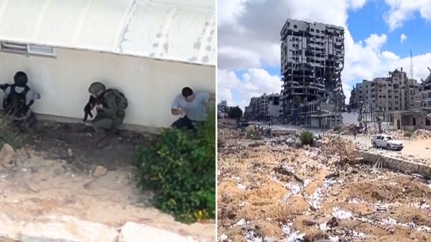 Minął rok od potężnej eskalacji konfliktu między Hamasem i Izraelem. Siły IDF udostępniły niepublikowane wcześniej nagranie z "czarnej soboty", czyli 7 października 2023 roku. Wówczas bojownicy Hamasu zaatakowali izraelskie miejscowości przy Strefie Gazy. Agencja AP również udostępniła te nagranie. Widać na nim, jak na zwykłym osiedlu dochodzi do strzelaniny pomiędzy terrorystami, którzy atakują żołnierzy Izraela próbujących ewakuować stamtąd mieszkańców. Wszystko działo się w kibucu Re’im. Późniejsza odpowiedź wojsk IDF zamieniła Strefę Gazy w ruiny. Agencja AP pokazała nagrania sprzed i po wkroczeniu Izraelczyków do miasta. Ponad rok temu w centrum Gazy toczyło się życie. Dziś leżą tam tony gruzu, spod których wciąż wydobywane są ciała. Jeśli chodzi o przywódców Hamasu, kluczowe postacie, takie jak Jahja Sinwar, wciąż są na wolności. Konflikt doprowadził do ogromnych zniszczeń i katastrofy humanitarnej. Dostęp do czystej wody, opieki zdrowotnej oraz żywności jest poważnie ograniczony. Ponad 2 miliony ludzi cierpi z powodu wojny. Z głodu w rok zmarło ponad 60 tysięcy osób. Konflikt trwa dalej. Obie strony postrzegają walkę jako kwestię przetrwania.