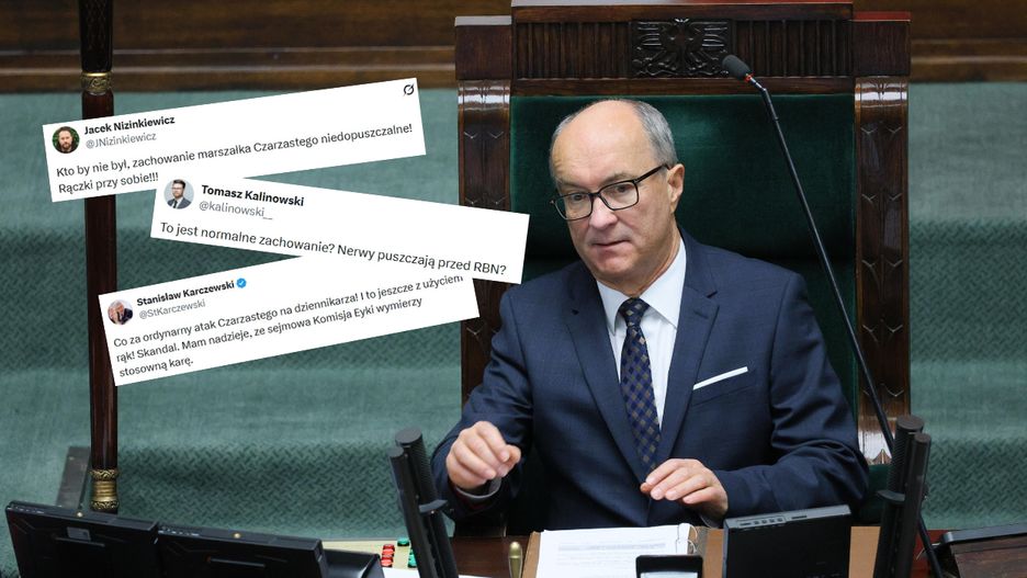 Nie milkną echa sytuacji, jaka miała miejsce we wtorek na sejmowym korytarzu. Marszałek Włodzimierz Czarzasty objął reportera Republiki, który próbował wypytywać go o niewypełnioną ankietę bezpieczeństwa. Sprawa wzbudziła wielkie emocje wśród komentatorów i polityków. "Co za ordynarny atak" - ocenił Stanisław Karczewski z PiS. "Rączki przy sobie" - napisał z kolei dziennikarz Jacek Nizinkiewicz.