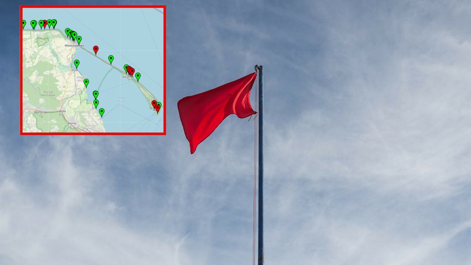 - Czerwone flagi pojawiły się na kąpieliskach w województwach pomorskim i zachodniopomorskim, m.in. w Krynicy Morskiej, Gdańsku i Międzyzdrojach.