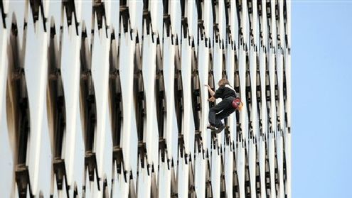 Alain Robert, znany powszechnie jako "Człowiek-pająk", zdobył kolejny wysoki budynek. Tym razem to podparyski "Ariane" mierzący 230 metrów. Alain ryzykuje za każdym razem życie wspinając się bez zabezpieczeń na najwyższe (i najbardziej znane) budynki świata. Był nawet raz w Warszawie, wspinał się oczywiście na hotel Marriott. "Człowiek-pająk" wszedł już na 60 budynków. Czekamy na kolejne podboje.