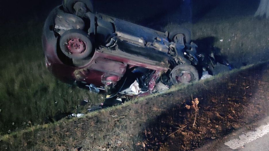 20-letni kierowca podczas manewru wyprzedzania zderzył się czołowo z nadjeżdżającym z naprzeciwka volvo. Auta wypadły z drogi i dachowały. Dwie osoby trafiły do szpitala.
