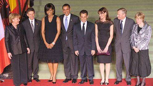Angela Merkel z mężem, Joachimem Sauer, pierwsza dama USA Michelle Obama, prezydent Barack Obama, prezydent Francji Nicolas Sarkozy, z żoną Carlą Bruni-Sarkozy, sekretarz generalny NATO Jaap de Hoop Scheffer z żoną Jeannine