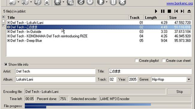 BoncEnc to bezpłatny program służący do konwersji plików muzycznych na różne formaty i zrzucania zawartości krążków CD na dysk twardy.