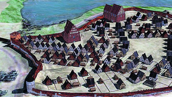 Najwięcej wątpliwości i kontrowersji może wywoływać wygląd miasta z lat 60. XIV wieku. Lublin wtedy podnosił się ze zniszczeń. Zamiast wałów, wokół zabudowań pojawił się mur. Gdy oglądamy zabudowę, od razu rzucają się nam w oczy stojące obok siebie domki wzniesione z muru pruskiego. Białe ściany z zaznaczonymi ciemnymi liniami belek konstrukcyjnych wyglądają jak niemieckie miasteczko.