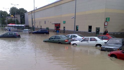 W Dębicy woda wdarła się do centrum handlowego "Galeria Dębicka", zamieniając jego parter w rwącą, błotnistą rzekę.
