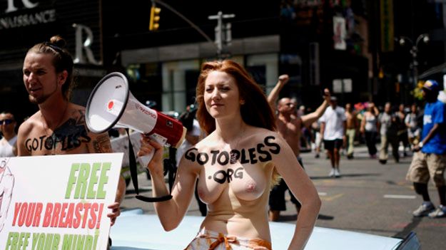 Nowojorska parada topless zbiegła się w czasie z protestami przeciwko dwóm młodym kobietom, które stały się atrakcją turystyczną na Times Square. Ubrane są w skąpą bieliznę, mają pióra na głowie a piersi malują farbami w amerykańskie barwy narodowe. Ponieważ pokazywanie się topless jest w Nowym Jorku legalne, władze miasta nie mogą ich usunąć z placu.