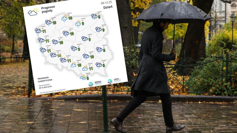 Deszczowy, ale ciepły wtorek. Prognoza pogody na 9 grudnia