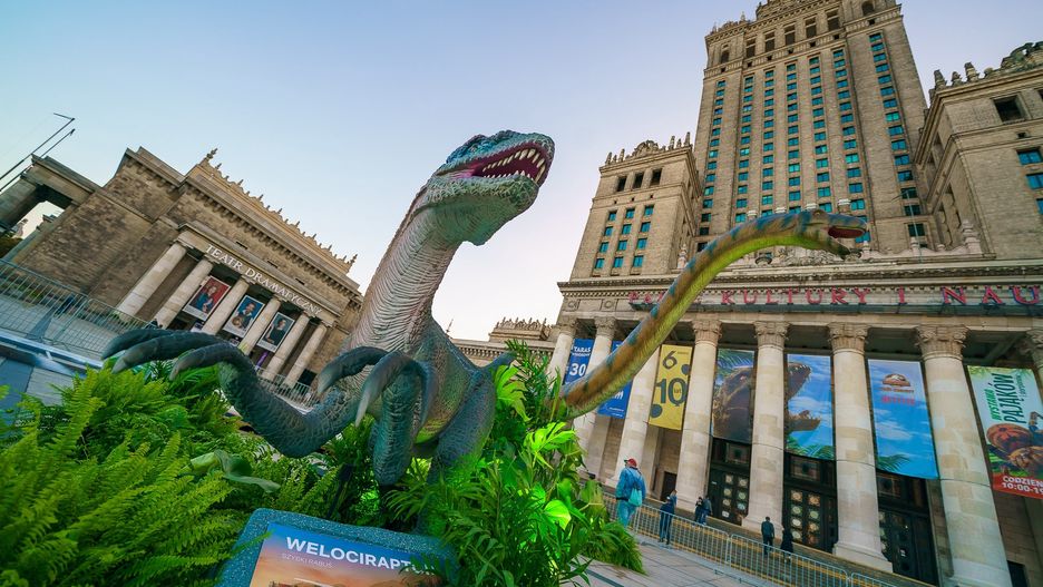 18 września, pod Pałacem Kultury i Nauki, pojawiły się cztery ogromne dinozaury rodem z Parku Jurajskiego. Mamenchizaur, Triceratops oraz dwa Velociraptory. Uwaga na ogony i długie szyje! Dinozaury, niczym żywe, poruszają się i wydają dźwięki.
