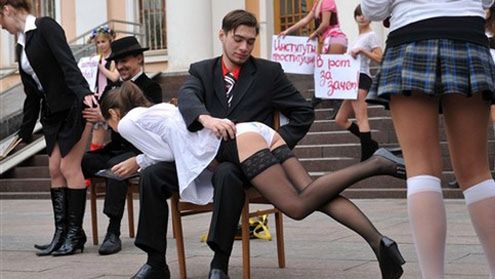 Przed ukraińskim ministerstwem edukacji odbył się protest nietypowy protest organizacji FEMEN. Organizacja słynie z organizowania szokujących i prowokujących happeningów. Młode i piękne Ukrainki - studentki i licealistki - już wcześniej rozbierały się na ulicach Kijowa, by protestować przeciw takim zjawiskom jak seksturystyka. Tym razem protest dotyczył sytuacji na ukraińskich uniwersytetach.