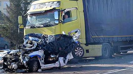 Cztery auta zmiażdżone przez tira