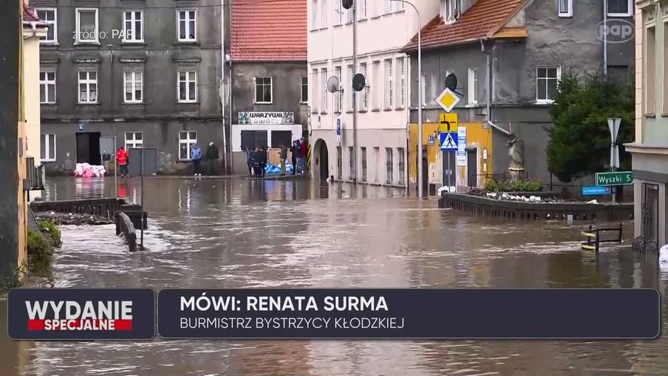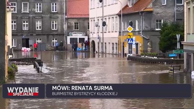 Renata Surma, burmistrz Bystrzycy Kłodzkiej, była gościem specjalnego wydania porannego programu Wirtualnej Polski. - Skutki powodzi są gorsze niż w 1997 roku - powiedziała na antenie. Surma przyznała, że sytuacja zmusiła ją także do podejmowania dramatycznych decyzji. - Wszyscy patrzyli na mnie. Tego się nie dało uniknąć. Dramatyczne było to, że prosiliśmy ludzi o ewakuację - przyznała. W pewnym momencie pani burmistrz załamał się głos. - Osoby, które się nie ewakuowały, dzwoniły do nas z płaczem, żeby ich ewakuować. Musiałam podjąć decyzję, że nikogo do nich nie wyślemy, żeby nie narażać życia tych młodych ludzi (ratowników - przyp.red.) - przyznała. - To było najbardziej dramatyczne. Tym osobom, które zostały, nic się jednak nie wydarzyło - dodała.