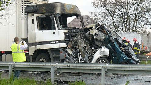 We wczorajszym wypadku na drodze krajowej nr 1 w Siewierzu (woj. śląskie). Tir uderzył w dwa samochody osobowe i wepchnął je na zatrzymującą się przed światłami ciężarówkę - powiedział w rozmowie z Wirtualną Polską kom. Janusz Jończyk ze śląskiej policji.