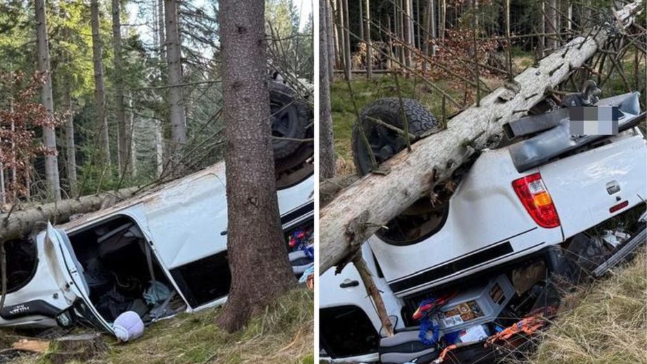- Toyota z pięcioma osobami wpadła w poślizg podczas wyprzedzania, ścięła dwa świerki i dachowała w lesie.