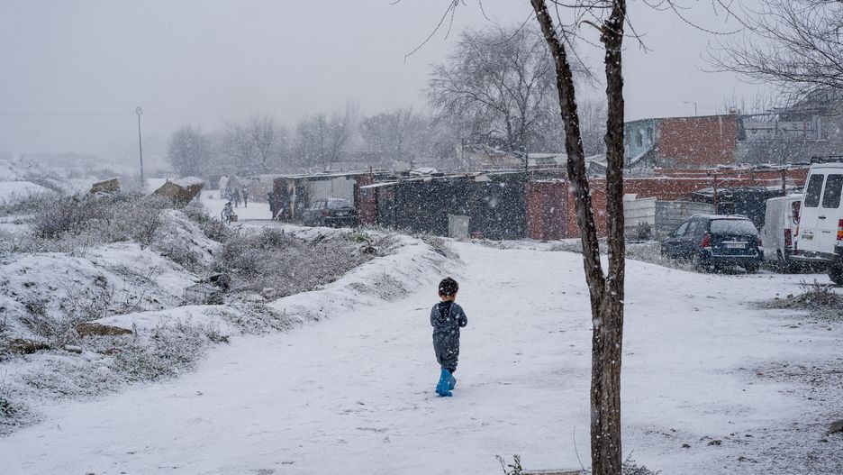 Dziecko stało na śniegu w piżamie. Później wykryto u niego siniaki