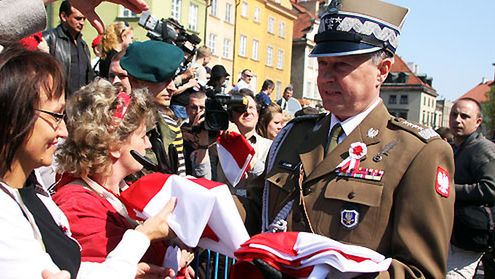 Uroczyste podniesienie flagi państwowej na wieży zegarowej Zamku Królewskiego w Warszawie rozpoczęło obchody przypadającego na 2 maja Dnia Flagi RP. W uroczystości wziął udział szef BBN Aleksander Szczygło.