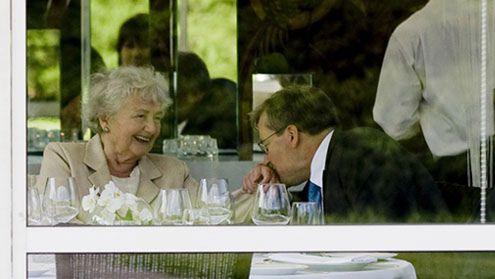 Kandydat PO na prezydenta, marszałek Bronisław Komorowski spotkał się w Dniu Matki ze swoją mamą, Jadwigą w warszawskich Łazienkach Królewskich.