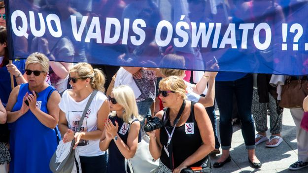 W szesnastu miastach wojewódzkich protestują nauczyciele. Nie zgadzają się na proponowaną przez rząd reformę oświaty. Związek Nauczycielstwa Polskiego nie zgadza się na likwidację gimnazjów i ponowne wprowadzenie ośmioletnich szkół podstawowych. Twierdzi, że na dzieciach "nie można eksperymentować". Reforma oświaty zakłada również przywrócenie szkół branżowych i techników, które zostały zlikwidowane przy ostatniej reformie, która miała miejsce w 1999 r.