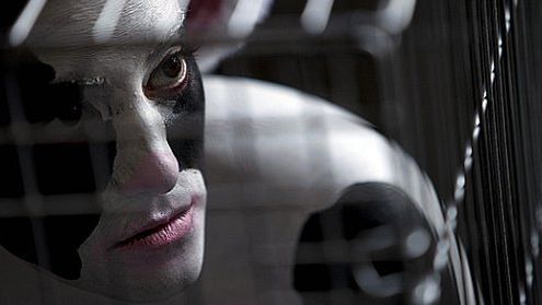 Siedząca samotnie w klatce kobieta - ptak wywoływała szczególne zainteresowanie widzów.