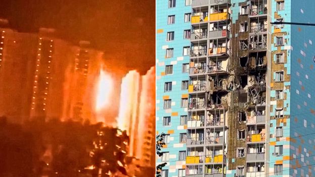 Zmasowany atak dronów na Rosję i Moskwę w nocy z poniedziałku na wtorek. Mieszkańcy obwodu moskiewskiego w miejscowości Ramienskoje nagrali moment eksplozji po uderzeniu bezzałogowca w jeden z wieżowców. Nagrania, które zaczęły krążyć po platformie Telegram, udostępniła agencja Reutera. Widać na nich, że siła wybuchu była potężna. Tuż przed uderzeniem w budynek mieszkalny można było usłyszeć charakterystyczny dźwięk drona, a następnie huk od eksplozji, czemu towarzyszyły też wielkie kule ognia. Dziennikarz Reutera zjawił się nad ranem pod wieżowcem. Nagrania z kilku godzin po ataku ukazały, jak poważnie zniszczony został blok pod Moskwą. - Wszystko zaczęło się około 2 nad ranem. Było kilka eksplozji, około trzech huków lub coś w tym rodzaju, a potem był ogień i wszystko ucichło - przyznał Roman mieszkaniec zniszczonego wieżowca w Ramienskoje. Jak poinformował gubernator obwodu moskiewskiego Andriej Worobiow, w tym ataku zginęła 46-letnia kobieta, a trzy kolejne osoby zostały ranne. Wśród zaatakowanych obwodów znalazły się także smoleński, briański, lipiecki, kałuski, orłowski, tulski, biełgorodzki i kurski. Według nieoficjalnych informacji, Rosję miało zaatakować ok. 100 bezzałogowców.