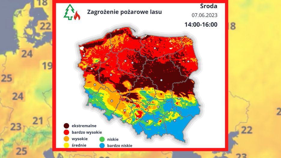 Zgodnie z mapą zagrożenia ibles.pl, z której korzystają Lasy Państwowe, bardzo wysokie zagrożenie pożarowe dotyczy mieszkańców południowej części woj. zachodniopomorskiego, północnej Ziemi Lubuskiej, woj. kujawsko-pomorskiego, północnego Mazowsza i woj. łódzkiego, a także całego Podlasia i części Lubelszczyzny.