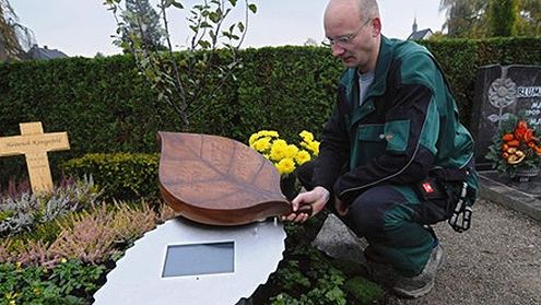 Nowy trend na niemieckich cmentarzach - elektroniczny nagrobek. Zamykany obrotowym liściem, pracuje dzięki akumulatorowi. Istnieją także wersje napędzane energią słoneczną. W części, która przez większość czasu jest zasłonięta znajduje się wyświetlacz na którym pokazują się zdjęcia. Można je wymieniać wedle życzenia przez port USB. Ceny elektronicznych nagrobków zaczynają się od 4500 euro.