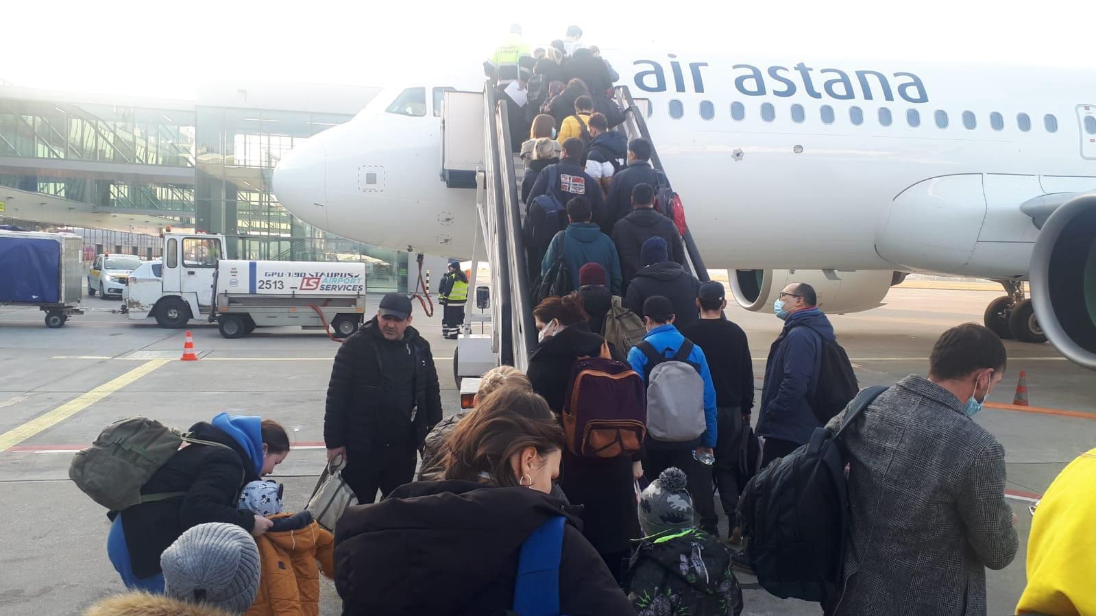 Do Kazachstanu trzema lotami ewakuacyjnymi liniami Air Astana z Katowic powróciły dotychczas 432 osoby z 533, którym udzielono pomocy przy wyjeździe z Ukrainy. Ambasada Republiki Kazachstanu w Polsce, Konsulaty Honorowe Republiki Kazachstanu w Katowicach, Krakowie oraz liczni przyjaciele tego kraju pomagają w zakwaterowaniu i zapewnieniu posiłków osobom przybywającym z Ukrainy.
