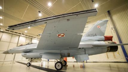Pierwszy w Polsce samolot F-16 Jastrząb pomalowany z wykorzystaniem najnowszych technik, zaprezentowany w Wojskowych Zakładach Lotniczych nr 2 w Bydgoszczy.