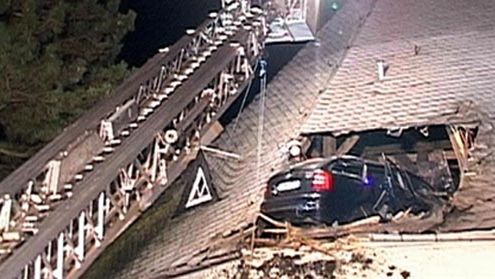 Jechał tak szybko, że poleciał i wbił się w dach kościoła