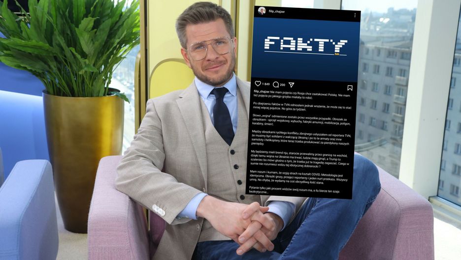 W swoim wpisie na Instagramie wyraził sceptycyzm wobec narracji swojej byłej stacji TVN - dotyczącej zagrożenia wojną i pomocy wojskowej dla Ukrainy.