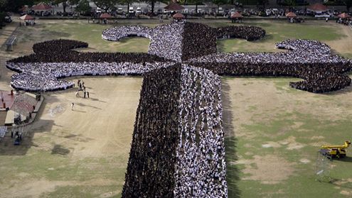 Studenci, nauczyciele i inni pracownicy Uniwersytetu św. Tomasza w Manili na Filipinach postanowili w dość nietypowy sposób uczcić Środę Popielcową. Tłum ludzi uformował na terenie kampusu uniwersyteckiego olbrzymi dominikański krzyż. Akcja ta jest próbą bicia rekordu Guinnessa w największym krzyżu utworzonym z ludzi. Co prawda pełna liczba uczestników nie jest jeszcze dokładnie znana, ale organizatorzy szacują, że w akcji wzięło udział ponad 20 tysięcy osób.