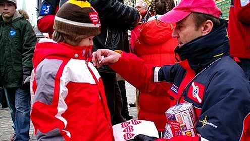 Wolontariusz zbierający pieniądze we Wrocławiu.