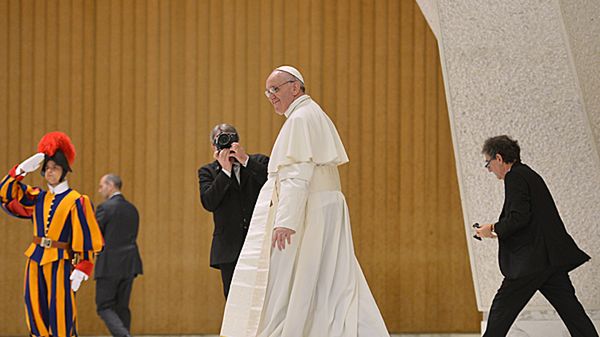 Franciszek przyszedł na mszę na piechotę. Wiernych całował w policzek