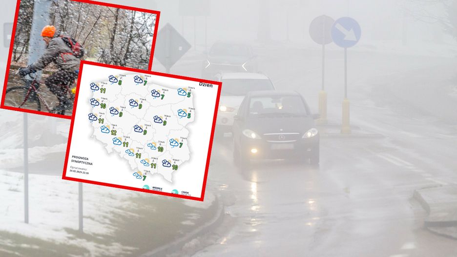 W środę pogodnie na wschodzie, zaś na zachodzie pochmurno i deszczowo. Okresami opady deszczu, a w górach deszczu ze śniegiem i śniegu. Rano lokalnie mgły ograniczające widzialność do 400 m. Temperatura maksymalna wyniesie od 4 do 9 stopni Celsjusza. Wiatr będzie słaby, na wschodzie z kierunków południowych, a na zachodzie zmienny. Wysoko w Tatrach porywy wiatru mogą osiągnąć 55 km/h.