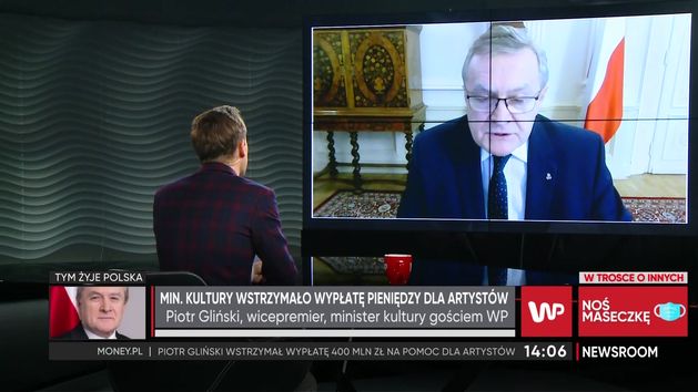 Fundusz Wsparcia Kultury został wstrzymany do czasu wyjaśnienia wszystkich wątpliwości. Piotr Gliński zapewnia, że nie było na niego w tej sprawie żadnych nacisków. Wicepremier przyznaje, że rozmawiał o tym z innymi politykami, ale decyzję podjął sam. Zauważyłem, co się działo w przestrzeni publicznej, pewne argumenty mnie przekonały - mówi minister kultury. Gliński zaznacza, że wątpliwości dotyczyły kilkunastu czy kilkudziesięciu firm z ponad 2,6 tysiąca podmiotów. Zapewnia, że wszystko zostanie zweryfikowane. Wicepremier zaprzecza, że urzędnicy pomylili dochód z przychodem. - Te pieniądze pójdą na funkcjonowanie tej firmy, na miejsca pracy, a nie do prywatnej kieszeni kapitalisty czy celebryty - mówi o wsparciu dla artystów.
