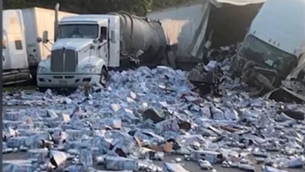 Autostrada na Florydzie zamieniła się w prawdziwie piwną drogę. Wszystko dlatego, że ciężarówka z naczepą przewożącą ładunek z puszkami przewróciła się. Część zawartości naczepy rozlała się na autostradzie. Srebrne morze puszek nie powstało przypadkowo. Do wypadku doszło na południowych pasach autostrady międzystanowej nr 75, ok. 50 kilometrów na północ od Tampy. Według analizy policji całe zdarzenie zaczęło się od tego, że jedna z ciężarówek próbowała zmienić pas ruchu, zmuszając tym samym inne pojazdy do gwałtownej reakcji. Niestety, jedna z ciężarówek nie zdążyła wyhamować i uderzyła w tę znajdującą się przed nią. Potem był już tylko efekt domino. I to właśnie ten ostatni pojazd okazał się sprawcą piwnej autostrady. Odcinek drogi przez kilka godzin był zamknięty. Żaden z kierowców nie ucierpiał w tym wypadku.