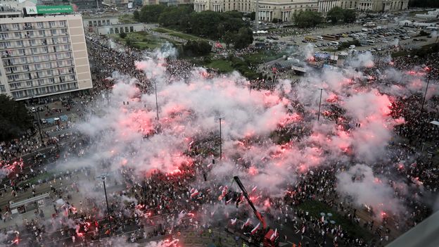 Z okazji 77. rocznicy wybuchu Powstania Warszawskiego 1 sierpnia 2021 roku punktualnie o godz. 17 w całej Polsce zawyły syreny alarmowe. Jak co roku tysiące warszawiaków upamiętniły poległych powstańców, gromadząc się m.in. na rondzie Dmowskiego przy Pałacu Kultury i Nauki w Warszawie. Nie zabrakło flag, czerwonych flar dymnych i pieśni patriotycznych. Zapraszamy na relację Wirtualnej Polski.