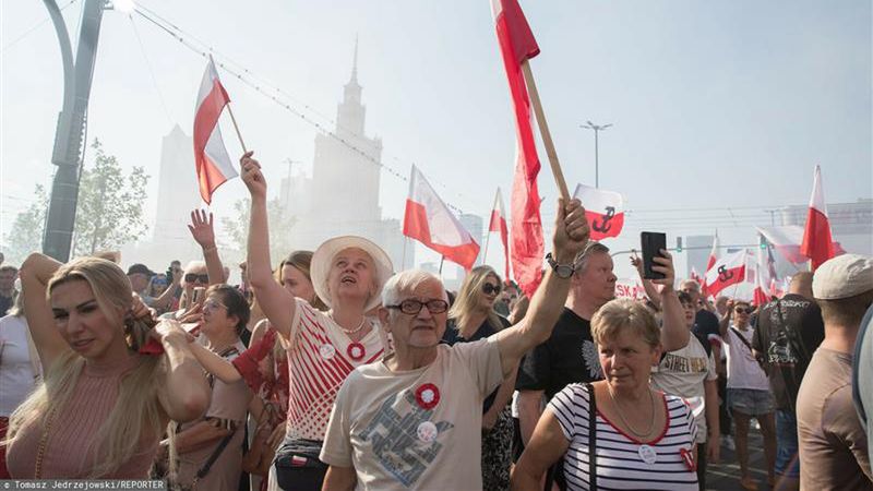 W centrum stolicy zgromadziły się tłumy, by upamiętnić bohaterów. Ludzie mieli z sobą biało-czerwone flagi oraz race. Wszyscy w ciszy wspominali walkę o niepodległość i suwerenność Polski.