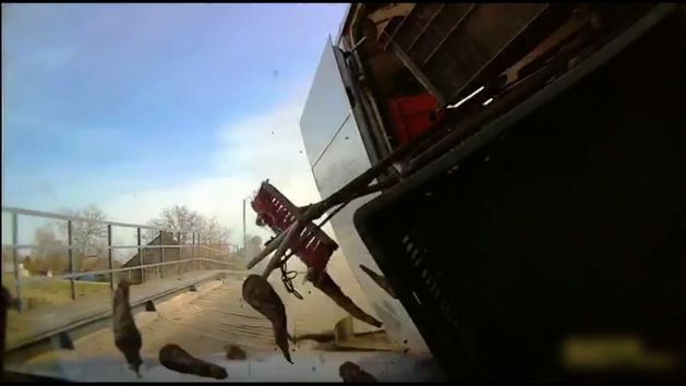 Groźny wypadek pod Elblągiem na moście. Kamery zarejestrowały niezwykły moment