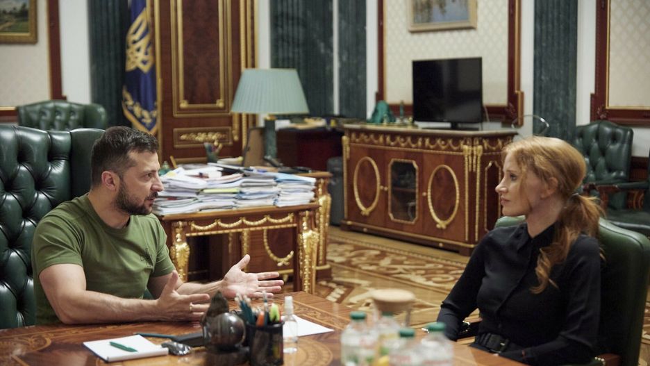Jessica Chastain i Włodymyr Zełenski spotkali się w pałacu prezydenckim w stołecznym Kijowie. O wydarzeniu poinformował sam prezydent za pośrednictwem swojego konta na Telegramie. Zamieścił tam wspólne zdjęcia z aktorką oraz słowne podziękowanie, w którym docenił, jak ważne dla Ukrainy są takie spotkania.