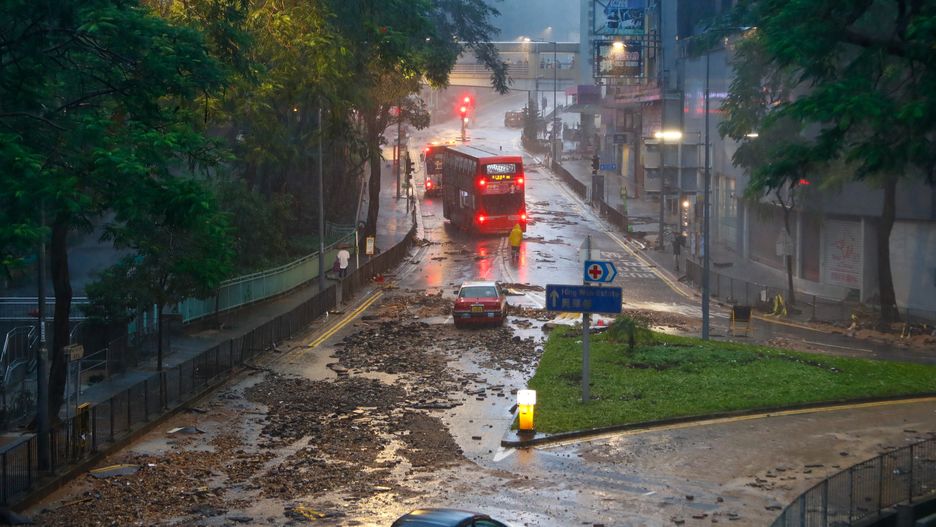 Kaskady wody spadły na górzysty teren miasta, a mieszkańców ostrzeżono przed ryzykiem osunięcia się ziemi. Ulice miasta zamieniły się w potoki, zalany został także tunel będący jedną z głównych arterii łączących wyspę Hongkong z Kowloon. Z powodu "ekstremalnych warunków spowodowanych rozległą powodzią i poważnymi zakłóceniami w ruchu", jak podał rząd, wszystkie szkoły zostały zawieszone w piątek.