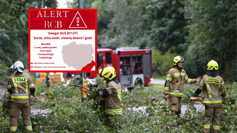 "Uwaga! Dziś (07.07) burze, silny wiatr, ulewny deszcz i grad. Możliwe przerwy w dostawie prądu. Zabezpiecz rzeczy, które może porwać wiatr" - wiadomość SMS tej treści Rządowe Centrum Bezpieczeństwa wysłało do osób przebywających na terenie województwa podkarpackiego oraz w części województw małopolskiego i lubelskiego.