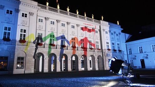 Okolicznościowa iluminacja Pałacu Prezydenckiego jest animacją barw Unii Europejskiej oraz loga polskiej prezydencji.