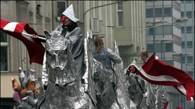 Ponad 200 osób towarzyszyło postaci św. Marcina w zwyczajowej paradzie inaugurującej 12. urodziny ulicy św. Marcina - jednej z głównych ulic Poznania. Paradę, mimo mżącego deszczu, obejrzało kilka tysięcy osób.
