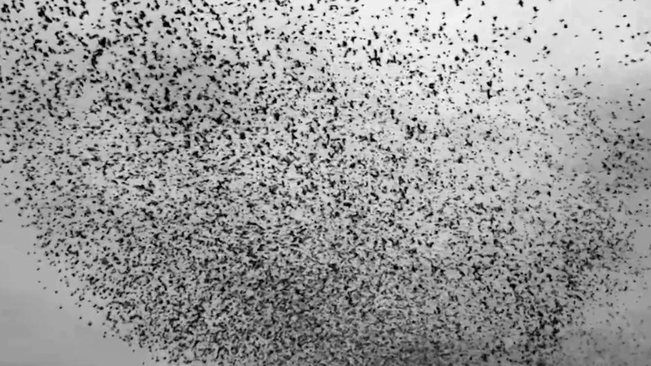 Imponujące zjawisko na niebie. Nagrał murmurację szpaków