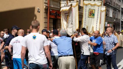 Przepychanki i szarpanina podczas procesji